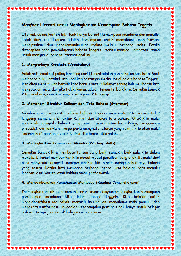 • Manfaat Literasi Untuk Meningkatkan Kemampuan Bahasa Inggris (Oleh: Wilda Isna Sulistyaningrum, S.Pd.)