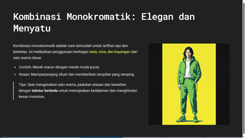 Tips Memilih Paduan Warna Atasan dan Bawahan (Oleh : Aroem Santilitania, S.Pd.)